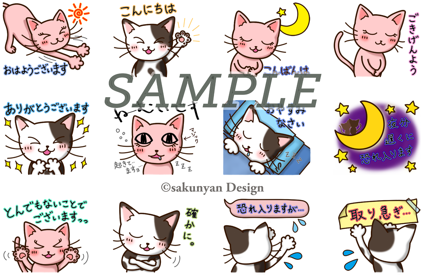 sakunyan Designオリジナル制作のLINEスタンプ。LINE STOREにて随時販売予定です。